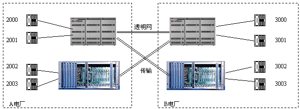 適用范圍:這種應(yīng)用適用于對(duì)電話系統(tǒng)安全性要求嚴(yán)格的場(chǎng)合,如電力系統(tǒng)行政交換機(jī)與調(diào)度交換機(jī)就可以以上述方式實(shí)現(xiàn)備份,從而實(shí)現(xiàn)行政或調(diào)度交換機(jī)某一臺(tái)不能工作時(shí),依然可以通過(guò)備份系統(tǒng)打電話。