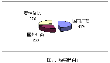 鑒于國(guó)內(nèi)并沒(méi)有知名度很高的CRM實(shí)施廠商,而國(guó)外的著名廠商在國(guó)內(nèi)的品牌宣傳也不足,所以調(diào)查表中只設(shè)了:國(guó)內(nèi)廠商、國(guó)外廠商和根據(jù)性價(jià)比進(jìn)行選擇三個(gè)項(xiàng)目,與購(gòu)買能力對(duì)照,預(yù)期實(shí)施金額在100萬(wàn)以下的企業(yè),一般側(cè)重國(guó)內(nèi)廠商,而實(shí)施金額在100萬(wàn)以上企業(yè)則側(cè)重國(guó)外企業(yè)。