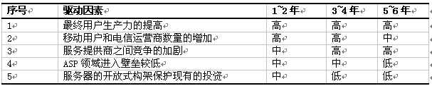 下表顯示了ASP統(tǒng)一信息服務(wù)市場的驅(qū)動因素