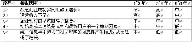 下表顯示了ASP統(tǒng)一信息服務(wù)市場的抑制因素
