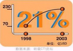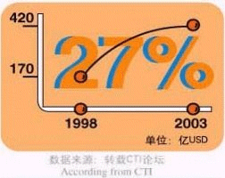 - 據(jù)CTI論壇轉引有關統(tǒng)計數(shù)字表明,全球呼叫中心外包市場1998年的產值為170億美元,2003年有望達到420億美元,并正以每年遞增27%的速度快增長;