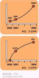 - 中國CRM市場經過一段時間的快速增長,2000年市場銷售額達到4500萬元左右。預計到2004年有望達到30600萬元。CCID根據(jù)大量調查分析,對中國CRM市場規(guī)模做出如下預測: