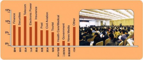 展會期間,我們將邀請近20,000名來自電信、保險、銀行、證券、郵政、電力、民航、旅游、鐵路、物流、制造業(yè)、房地產、醫(yī)藥、政府部門及煙草等行業(yè)的專業(yè)觀眾前來參觀。