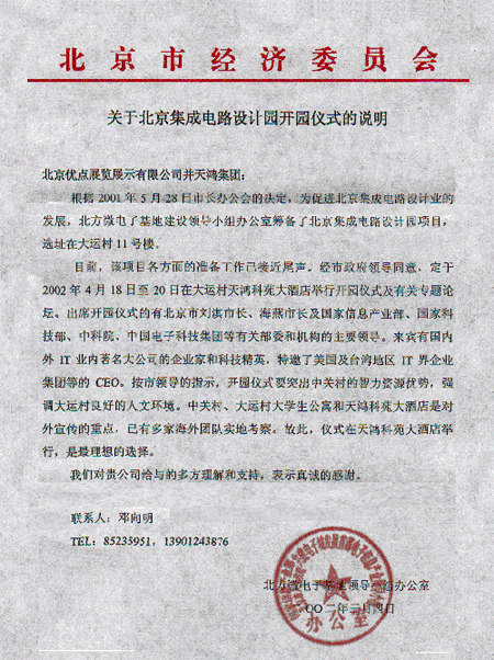 首屆呼叫中心運營管理研討會組委會 重要通告 本次大會組委會及會議舉辦地點“天鴻科園大酒店”日前接到北京市人民政府通知,由于“北京集成電路設計園開園儀式”將于2002年4月18日至4月20日在大運村、天鴻科園大酒店舉行開園儀式及相關活動,屆時將有北京市劉淇市長、海燕市長及國家信息產業(yè)部、國家科技部、中科院、中國電子科技集團等有關部委和機構的主要領導出席。按市領導指示,為配合此次重大活動圓滿舉行,“首屆呼叫中心運營管理研討會”日期更改為2002年4月23日至4月25日在北京天鴻科園大酒店舉行,望有關參會單位做好相應的后續(xù)工作。特此通告! 組委會對有關參會單位的支持與配合表示真誠的感謝。 首屆呼叫中心運營管理研討會組委會