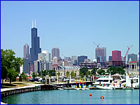 芝加哥并不是一個(gè)旅游城市,人口也只有200多萬。如果說觀光景點(diǎn)的話,就只有位于城市中心由近40多座高樓組成的摩天大樓群,高聳入云的高樓一座連著一座,使得芝加哥整個(gè)城市看上去象是鋼筋水泥構(gòu)成的森林,充滿了大都市的氣魄。其中的西爾斯大廈(Sears Tower),在紐約的世貿(mào)大廈毀于恐怖事件之后,成為全美最高建筑。