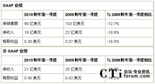 - 2010財(cái)年第一季度的運(yùn)營(yíng)現(xiàn)金流為15億美元。相比之下,2009財(cái)年第一季度的運(yùn)營(yíng)現(xiàn)金流為27億美元,2009財(cái)年第四季度運(yùn)營(yíng)現(xiàn)金流為20億美元。