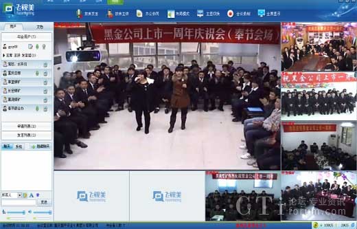 首先,飛視美為總部及5個辦事處分別安裝了飛視美視頻會議軟件,將慶典場地劃分為1個主會場和5個分會場,總部與分支機(jī)構(gòu)的員工都在當(dāng)?shù)貐⒓討c典,通過飛視美進(jìn)行在線演講與總結(jié)、相互問候、相互祝福、表演節(jié)目、進(jìn)行互動游戲等,這是一種“高科技互動”。其次,為了達(dá)到更好的視頻溝通效果,飛視美為黑金實(shí)業(yè)量身定制了一套硬件設(shè)備方案。根據(jù)各會場的面積、參與人數(shù)等情況,提供了一整套硬件參考:包括攝像設(shè)備、音響設(shè)備、功效設(shè)備等,并派出技術(shù)團(tuán)隊(duì)專門赴重慶為客戶進(jìn)行設(shè)備搭建和調(diào)試,保障了此次慶典的最佳效果。