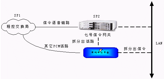 從程控端局送出來(lái)的信令和話(huà)路通過(guò)不同的PCM傳輸,信令鏈路接到七號(hào)信令網(wǎng)關(guān)轉(zhuǎn)換,通過(guò)消息方式傳遞到呼叫中心平臺(tái),而話(huà)路則直接通過(guò)PCM線(xiàn)連接到電信平臺(tái)上進(jìn)行話(huà)路連接。這種方式結(jié)構(gòu)明晰,有利于系統(tǒng)管理,大大增強(qiáng)了系統(tǒng)容量的擴(kuò)展能力。