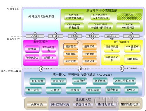 欣方呼叫中心是基于下一代融合網(wǎng)絡技術(shù)和架構(gòu)的新型呼叫中心平臺,面向PSTN(固定電話網(wǎng))、PLMN(移動電話網(wǎng))、3G窄帶視頻和NGN/IMS(軟交換)多種網(wǎng)絡接入提供多媒體聯(lián)絡中心系統(tǒng),支持話務員與客戶之間語音、視頻、傳真、消息等多種通訊方式。系統(tǒng)采用下一代網(wǎng)絡融合架構(gòu),呼叫平臺采用SIP信令方式搭建,信令與媒體分離、平臺與網(wǎng)絡無關(guān),支持多種異構(gòu)網(wǎng)絡環(huán)境接入,支持多種媒體統(tǒng)一排隊與路由。