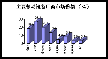 (2)市場特點:中興通訊、華為技術等非外資廠商在GSM網(wǎng)絡基礎設備領域取得突破且取得了不凡的業(yè)績,雖不足撼動外資品牌的霸主地位,但在移動交換系統(tǒng)、基站系統(tǒng)市場中份額迅速擴大,移動網(wǎng)絡的迅速擴張給非外資廠商還是留有相當?shù)目臻g。