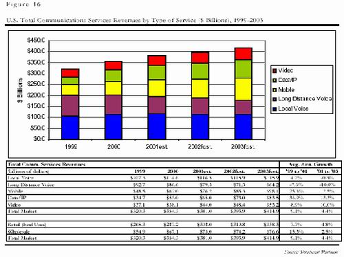 電信市場不是一個孤立的市場,而是由電信服務(wù)和電信制造兩個緊密相連的市場組成的。電信制造業(yè)不斷進(jìn)行研發(fā)創(chuàng)新,為電信服務(wù)業(yè)提供新的業(yè)務(wù);而電信服務(wù)也利用電信制造業(yè)的新技術(shù),并把這些服務(wù)最終提供給商業(yè)和普通消費者兩類用戶?梢哉f,電信制造業(yè)的發(fā)展在很大程度上是由電信服務(wù)業(yè)決定的。要了解電信制造市場的將來,不得不從電信服務(wù)市場的變化談起!