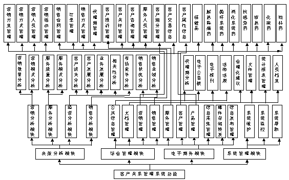 根據(jù)分析,將醫(yī)藥行業(yè)的客戶關(guān)系管理功能分為四個主要模塊: