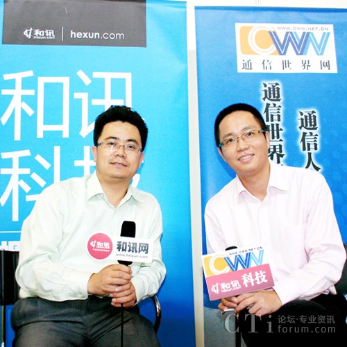 圖:通信世界網(wǎng)總編劉啟程(左)現(xiàn)場訪談東進技術(shù)總裁賀建楠(右)