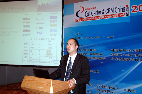 2006年4月3日至5日,2006中國(guó)呼叫中心與客戶關(guān)系管理大會(huì)在北京國(guó)際會(huì)議中心隆重召開(kāi),以下是星際網(wǎng)絡(luò)的執(zhí)行副總裁柳國(guó)東專題演講實(shí)錄: 第一個(gè)特點(diǎn)就是我們提出來(lái)了一個(gè)全程一體化的服務(wù)解決方案。整個(gè)解決方案有三個(gè)層面,第一個(gè)層面就是我們要和企業(yè)一起建設(shè)一個(gè)適用的呼叫平臺(tái)。現(xiàn)在我們企業(yè)在選擇建立呼叫中心的時(shí)候也有一些困惑,比如說(shuō)我要建設(shè)一個(gè)30個(gè)坐席的呼叫中心,可能很多集成商的方案和報(bào)價(jià)從20萬(wàn)到100萬(wàn)都有,現(xiàn)在各個(gè)呼叫中心的平臺(tái)都已經(jīng)很成熟了,但是作為企業(yè)來(lái)講,要選擇一個(gè)適合自己的呼叫中心,而不是選擇昂貴的或者是低廉的。我們建立呼叫中心以后可以進(jìn)行高效率的電話接聽(tīng)和服務(wù)人員的管理平臺(tái)。但是并不能解決我們服務(wù)的流程管理、流程監(jiān)控。咨詢的結(jié)果我們并沒(méi)有因?yàn)榻⒑艚兄行木桶褑?wèn)題解決了。所以我們星際網(wǎng)絡(luò)提出了服務(wù)應(yīng)用的概念。一般來(lái)說(shuō)現(xiàn)有的企業(yè)大概的服務(wù)方式有兩種,那么星際網(wǎng)絡(luò)根據(jù)這兩種不同的服務(wù)模式,我們也提供了相應(yīng)的服務(wù)應(yīng)用。我們希望通過(guò)一個(gè)前臺(tái)高效的服務(wù)中心平臺(tái),和后臺(tái)一個(gè)豐富的系統(tǒng)應(yīng)用,真正幫助企業(yè)解決完成的客戶流程。