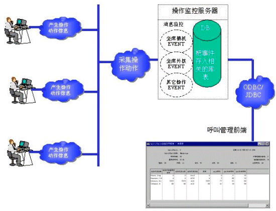這種方案的主要優(yōu)點(diǎn)是信息非常快速和準(zhǔn)確,由于消息來源只和坐席的操作動(dòng)作有關(guān),并且中間沒有其它中轉(zhuǎn)系統(tǒng),所以不會(huì)出現(xiàn)坐席已經(jīng)掛機(jī)2秒后,管理系統(tǒng)還顯示坐席通話的情況。