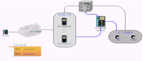 青牛IVR集群方案將原來放在PBX后面的IVR"前移",PBX的LINK只有和坐席相關的信息,大量的和IVR相關的呼叫信息被剝離出去,由青牛網絡IVR直接自行處理。根據統(tǒng)計,自動業(yè)務的呼叫量在整個客服中心呼叫量中占大多數,當呼叫量越大的時候,該方案的優(yōu)勢就越明顯。