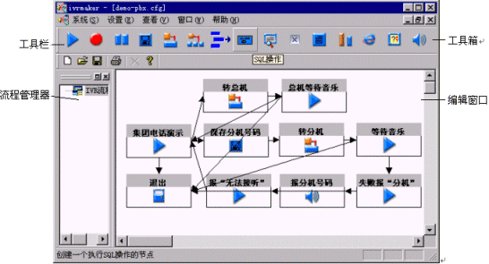 ZingServ標(biāo)準(zhǔn)版本中的IVR可以直接通過(guò)SQL語(yǔ)句存取Mysql,Oracle,Sybase和MSSQL Server這4種數(shù)據(jù)庫(kù),并且可以通過(guò)變量一次對(duì)多條記錄中的多個(gè)字段進(jìn)行操作。這種方式大大減少了二次開(kāi)發(fā)的工作量,給集成商和最終用戶(hù)帶來(lái)了許多方便。