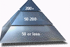 從另外一個角度,我們來分析一下呼叫中心市場的全球發(fā)展,呼叫中心市場按照用戶規(guī)模來劃分,可以劃分成200座席以上以電信為代表的大型呼叫中心市場,50到200座席,以銀行,證券等金融機(jī)構(gòu)為代表的中型呼叫中心市場以及50座席以下的大多數(shù)企業(yè)及企業(yè)用戶為代表的小型呼叫中心市場,從左圖很容易看出,呈現(xiàn)出的是一個金字塔的分布機(jī)構(gòu),據(jù)權(quán)威機(jī)構(gòu)的統(tǒng)計數(shù)據(jù)表明,200座席以上的呼叫中心已經(jīng)趨近飽和,大約5%的發(fā)展空間,而50座席以下的話叫中心市場取呈現(xiàn)出勃勃生機(jī),發(fā)展空間很大,大約70%的市場容量,那么翻過來,我們也很容易看到,市場機(jī)會的不同,導(dǎo)致
