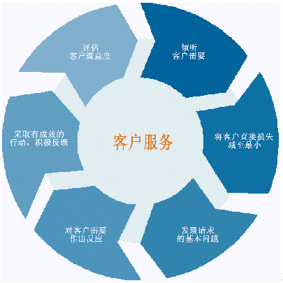 客戶服務(wù)不僅限于把公司提供給客戶使用。客戶服務(wù)是與客戶交互的一個完整過程,包括聽取客戶的問題和要求,對客戶的需要作出反應(yīng)并探詢客戶新的需求。我們真的不能將其看成一個簡單的過程?蛻舴⻊(wù)可以用一個復(fù)雜的循環(huán)來表示,其中不僅僅包括了客戶和客戶服務(wù)部門,實際上包括了整個公司,即把公司整體作為一個受客戶需求驅(qū)動的對象。