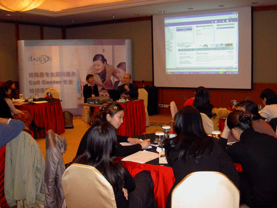 博雅思 "客戶服務管理基礎課程",旨在通過極具實踐價值的培訓課程以及課程后的練習指導,讓學員了解并掌握在日常 Call Center 運營管理中必備的專業(yè)技巧。首站在成都推出,采用收費形式,報名參會總人數(shù)高達32人,超出了預計,全部是來自農(nóng)行,建行,電信,聯(lián)通,保險行業(yè)西南各地區(qū)的客戶服務中心主管負責人。