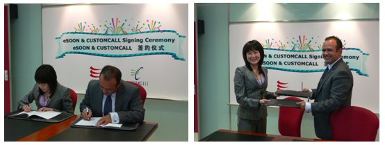 2007年5月16日,億迅中國(guó)軟件有限公司北京分公司的會(huì)議室里花團(tuán)錦簇,eSOON與Customcall公司的簽約儀式在和諧融洽的氣氛中進(jìn)行。雙方先對(duì)未來(lái)的合作發(fā)展進(jìn)行了討論,10點(diǎn)58分,億迅公司CEO李冰影女士與澳洲Customcall