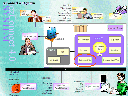 作為一種成功的企業(yè)應(yīng)用案例,這種方案已經(jīng)成功的應(yīng)用在我們的企業(yè)級(jí)多媒體呼叫中心 ezConnect產(chǎn)品中,該產(chǎn)品能同時(shí)處理傳統(tǒng)呼叫中心的電話請求和以互聯(lián)網(wǎng)為中心的Web 請求,同時(shí)配備多種實(shí)時(shí)交流手段,軟電話功能和基于web 的文本交談,圖片共享,白板,文檔推送,IP電話,UMS, SMS 和WAP 等為客戶提供很方便且實(shí)用的功能, 并且提供基于特定技能路由的分配器,同時(shí)處理電話和Web請求。而且同時(shí)支持多種語言并提供統(tǒng)一的配置工具。當(dāng)該請求到達(dá)座席時(shí),在座席的桌面上彈出客戶的基本信息和交易信息,座席可以根據(jù)這些信息給客戶提供更加個(gè)性化的服務(wù)。本文就針對該產(chǎn)品的實(shí)際開發(fā)和實(shí)現(xiàn), 以及工作中的一些感想來與大家共同探討客戶信息管理的應(yīng)用和前景。