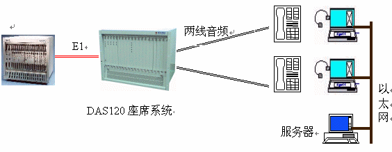 ·DAS120與交換平臺采用E1連接,信令為隨路信令CAS。