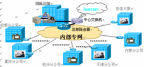 國航營銷部需要在已有的網(wǎng)絡(luò)平臺(tái)上,建立一個(gè)能進(jìn)行總部與各分公司之間交互式溝通的環(huán)境,需要一種網(wǎng)絡(luò)多媒體協(xié)同工作的應(yīng)用。