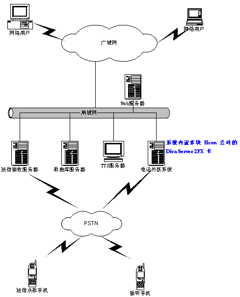 CTStart-2FX系統(tǒng)是靈訊科技公司采用加拿大Eicon網(wǎng)絡(luò)公司的Diva Server 2FX 語(yǔ)音卡開(kāi)發(fā)的恒基偉業(yè)公司的網(wǎng)絡(luò)點(diǎn)歌系統(tǒng)。該系統(tǒng)運(yùn)行在恒基偉業(yè)公司內(nèi)部。