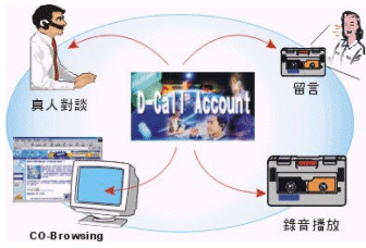 3、適用性廣: 任何需要與客戶或瀏覽者進行互動的網(wǎng)站, 均可藉D-Call的應(yīng)用增加業(yè)務(wù)主動性與提高客戶滿意度. 特別是在金融界, 客戶群多為網(wǎng)絡(luò)使用者, 每日固定上網(wǎng)搜尋金融信息, 若能吸引此類客戶, 將可有效拓展業(yè)務(wù).