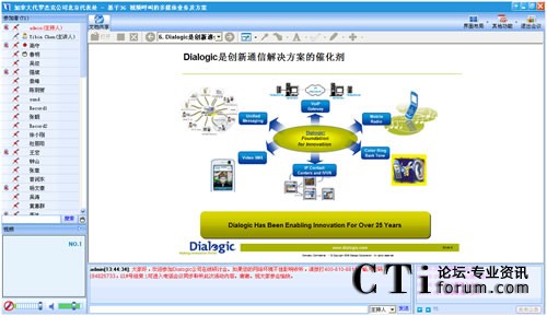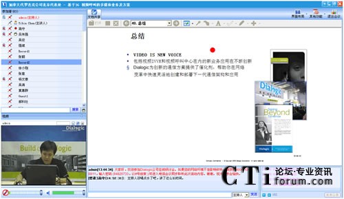 作為最早將3G語音視頻技術(shù)引入中國的世界級技術(shù)提供商,Dialogic在語音應(yīng)用和3G視頻一直具有領(lǐng)先競爭力。在此次“基于3G視頻呼叫的多媒體業(yè)務(wù)及方案”網(wǎng)絡(luò)研討會上,Dialogic中國區(qū)技術(shù)總監(jiān)陳益斌,以音視頻的在線直播方式,親身向與會觀眾講解Dialogic基于3G視頻呼叫的業(yè)務(wù),以及與3G數(shù)據(jù)業(yè)務(wù)的區(qū)別等前瞻3G視頻技術(shù)。