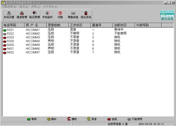 系統(tǒng)管理員可以方便地對所錄音的電話進(jìn)行管理,譬如設(shè)定每一條線路的電話號碼、使用者、是否錄音,錄音的方式等。