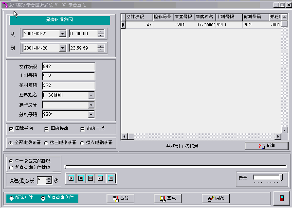 可以對錄音文件進(jìn)行備份,并可對選定的一條或一批文件進(jìn)行刪除。