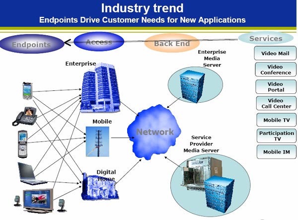 從英特爾獨立出來以后隨著業(yè)務重點的改變,Dialogic在自身的定位上也發(fā)生著變化。丁培江指出:“因為英特爾的重點是盡可能把處理器應用到不同的平臺上。所以以前在英特爾我們關注的重點是如何在ATCA架構(gòu)上處理多媒體,獨立處理以后,我們傳統(tǒng)的媒體處理還沒有放棄,但由于3G的重點是應用,所以我們的目標是用我們產(chǎn)品幫助合作伙伴構(gòu)建基于3G的應用,由于3G是逐步演進的,所以一定有TDM和IP的接口,我們就解決如何跨接,如何用多媒體板卡來處理視頻,無線和IP。這是我們專注的地方,我們會陸續(xù)推出新產(chǎn)品來構(gòu)建面向3G的多媒體應用。”