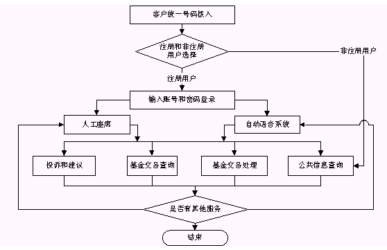 基金客戶服務(wù)呼叫中心系統(tǒng)的總體目標(biāo)是建立一個(gè)統(tǒng)一面向投資者的多媒體呼叫中心平臺,通過統(tǒng)一的特服號接入,實(shí)現(xiàn)統(tǒng)一的用戶服務(wù)界面,統(tǒng)一的熱線功能和統(tǒng)一的基金業(yè)務(wù)標(biāo)準(zhǔn),集中受理投資者對基金業(yè)務(wù)的需求,為投資者提供基金綜合性服務(wù)的無形窗口。系統(tǒng)以基金綜合業(yè)務(wù)系統(tǒng)為支撐,實(shí)現(xiàn)數(shù)據(jù)共享,完成業(yè)務(wù)咨詢、業(yè)務(wù)受理、業(yè)務(wù)查詢和客戶投訴等四大功能的一體化的處理與管理。
