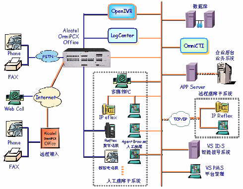 IP PBX:采用Alcatel OXO作為整個(gè)平臺(tái)通信接入設(shè)備,負(fù)責(zé)整個(gè)系統(tǒng)的語(yǔ)音通信。