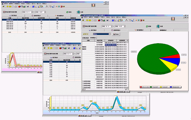 ·按照時間對來電以及Traffic進(jìn)行統(tǒng)計(jì),并且從立體折線圖中看到所選的日期內(nèi)各個時間段的呼叫分布數(shù);