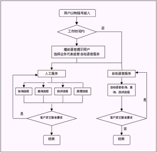 煙草公司呼叫中心將接入功能、導(dǎo)航功能、自動(dòng)語音查詢功能、人工座席服務(wù)功能、話路轉(zhuǎn)接功能、信息資料處理緊密聯(lián)系起來。用戶撥打特服電話號碼后,可以根據(jù)需要選擇人工服務(wù)、自動(dòng)語音查詢、自動(dòng)留言,并能夠在幾種服務(wù)中來回切換或轉(zhuǎn)接其它電話;所記錄的資料可以分門別類的進(jìn)行統(tǒng)計(jì)并形成報(bào)表,供相關(guān)部門進(jìn)行檢索查閱;意見處理完畢,可由座席主動(dòng)呼叫用戶,告知處理意見,形成閉環(huán)處理流程。