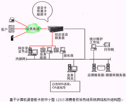 客戶利用電話、手機(jī)等撥打特服號(hào)碼12315進(jìn)入中小型12315消費(fèi)者投訴熱線系統(tǒng),本系統(tǒng)依托貴工商局各類(lèi)業(yè)務(wù)技術(shù)支持系統(tǒng)和網(wǎng)絡(luò)系統(tǒng),通過(guò)人工受理或自動(dòng)語(yǔ)音服務(wù)等方式全天24小時(shí)不間斷地為客戶提供各種服務(wù)。