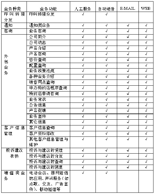 F、通知類業(yè)務(wù):對(duì)某些特定的對(duì)象通過(guò)自動(dòng)呼出或人工呼出進(jìn)行通知,實(shí)現(xiàn)政策法規(guī)、專題的通知,方式可以是電話、傳真、eMail、短消息、網(wǎng)站等;