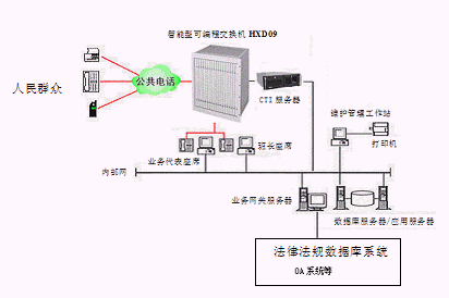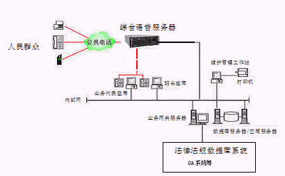 該系統(tǒng)的設計采用先進的三層CLIENT/SERVER網(wǎng)絡體系結(jié)構,集目前先進的計算機技術、通信技術、計算機電信集成(CTI)技術、多媒體呼叫接入技術、智能接入交換分配技術、數(shù)字語音處理技術、異構系統(tǒng)信息交互技術、INTERNET網(wǎng)絡技術、安全容錯技術、網(wǎng)絡組網(wǎng)技術等于一體,并與地級市司法行政部門/法院已有技術支持系統(tǒng)(如MIS系統(tǒng)、法律法規(guī)數(shù)據(jù)庫系統(tǒng)等)緊密結(jié)合在一起,突破時空的限制,通過人工座席、自動語音/傳真、司法部門相關人員等為群眾提供電話、傳真、手機等多種服務形式的周到、快捷、全方位的法律服務,為人民群眾與地級市司法行政部門/法院之間架起一座密切聯(lián)系的橋梁。