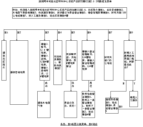 深圳博宇科技社區(qū)呼叫中心系統(tǒng)產(chǎn)品BYSQMSCCSH2.0 IVR流程主菜單如下(請放大到150%瀏覽):