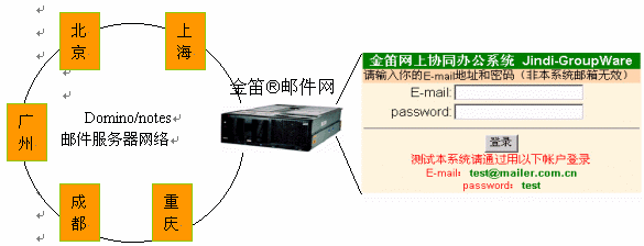 。1) 在不改變現(xiàn)有網(wǎng)絡硬件、軟件環(huán)境的情況下,添加一臺郵件網(wǎng)關(guān)服務器,通過統(tǒng)一的web登陸界面,輸入Email地址和密碼后,金笛?郵件網(wǎng)關(guān)會自動根據(jù)內(nèi)部DNS找到該用戶所在的Domino Mail Server, 并通過標準郵件協(xié)議POP3提取該用戶的郵件,以web頁面形式顯示在用戶屏幕上。