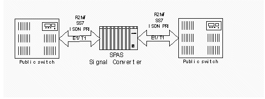 因為信令標準不同,部分國外通信設備無法與國內通訊網互通互連,SPAS-2000可編程交換機接口豐富,支持信令標準全面,成本低廉,可以為中國一號信令、七號信令、ISDN PRI(E1/T1)、環(huán)路信令、接入網V5信令等標準之間的轉換提供靈活完整的解決方案,同時當輸入和輸出的中繼接口不同時,其語音編碼可能不同,可利用多功能信號音板實現語音編碼的轉換(例如可以實現A LAW和U LAW之間的語音互轉)。連接圖見圖1: