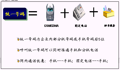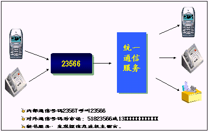 鐵路內(nèi)部員工可以統(tǒng)一所有的通信工具,只使用一個號碼,一次呼叫便可以完成通信,使通信更加簡單、可靠?梢詫崿F(xiàn)換機(jī)換網(wǎng)不換號,用戶獲得一個終身的聯(lián)系號碼,用戶無論更換任何通信工具,聯(lián)系號碼和方式不會改變。例如:在路局領(lǐng)導(dǎo)找下屬的時候,只需要撥打他的統(tǒng)一號碼,便可以直接找到他。不必考慮他是否在外出還是在辦公室,是否更換了手機(jī)號碼。統(tǒng)一號碼就像他員工號碼,始終不變,即撥即通!
