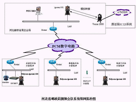 河北郵政會(huì)議電視系統(tǒng)是為滿足郵政自身業(yè)務(wù)的需要并著眼未來的發(fā)展而建設(shè)的系統(tǒng)。此系統(tǒng)以河北省郵政局為主會(huì)場(chǎng),各市郵政局為分會(huì)場(chǎng)共使用中小型會(huì)議室終端11臺(tái)、中型會(huì)議室終端1臺(tái)、MCU 1臺(tái)及電子白板1個(gè)。直真視通科技有限公司根據(jù)此系統(tǒng)的具體情況和需求,選用美國Polycom的產(chǎn)品。為河北省郵政局主會(huì)場(chǎng)配置中型會(huì)議室終端和PC機(jī)(用于MCU遠(yuǎn)程管理)各一臺(tái),同時(shí)考慮需要與原國家局會(huì)議電視系統(tǒng)對(duì)接,配置電子白板用于遠(yuǎn)程培訓(xùn);省郵政綜合網(wǎng)中心為省內(nèi)郵政綜合網(wǎng)的中心節(jié)點(diǎn),MCU放置在此中心,由省局主會(huì)場(chǎng)通過PC機(jī)實(shí)現(xiàn)遠(yuǎn)程管理;各市局分會(huì)議室配置中小型會(huì)議終端一臺(tái)。