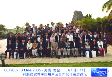 2005年3月11日,在絢麗的煙火、優(yōu)雅的水上芭蕾和來自全國金融、電信、航空、政府等70多位代表的掌聲中,Concerto One - 科勝通軟件2005中國用戶及合作伙伴高層論壇于風景如畫的海南博鰲落下帷幕。