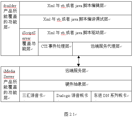 如圖2.1所述,ibuilder產(chǎn)品覆蓋了腳本編輯、編譯調(diào)試、腳本驅(qū)動、遠(yuǎn)端服務(wù)代理的功能,占據(jù)了IVR業(yè)務(wù)系統(tǒng)重要的一部分。