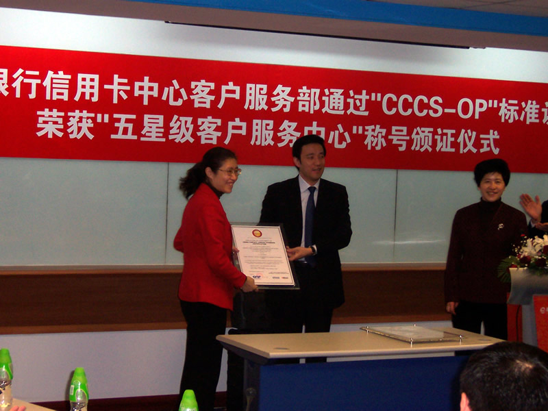 經(jīng)過長達(dá)8個月時間的準(zhǔn)備和嚴(yán)格的認(rèn)證審核,由中國信息化推進(jìn)聯(lián)盟客戶關(guān)系管理專業(yè)委員會常務(wù)副主任郭晨東先生親自掛帥組成的項目評審專家小組從領(lǐng)導(dǎo)能力、戰(zhàn)略規(guī)劃與部署、客戶價值、績效衡量與分析、現(xiàn)場管理、人員管理、流程管理、運(yùn)營績效結(jié)果等八個范疇對招商銀行信用卡中心客戶服務(wù)部進(jìn)行了全面而嚴(yán)格的審核,涉及五大類上百項詳細(xì)的運(yùn)營績效指標(biāo),歷經(jīng)初審評估、現(xiàn)場初審、初審評估報告提交與確認(rèn)、標(biāo)準(zhǔn)試運(yùn)行、績效全面提升、最終評審等階段,最終審核確認(rèn)招商銀行信用卡中心客戶服務(wù)完全符合并部分超越《全國呼叫中心運(yùn)營績效標(biāo)準(zhǔn)》(CCCS-OP-2003)的各項標(biāo)準(zhǔn)指標(biāo)和要求,于2005年1月31日正式批準(zhǔn)招商銀行信用卡中心通過該標(biāo)準(zhǔn)的五星級認(rèn)證,授予“五星級客戶服務(wù)中心”稱號。