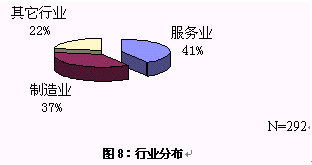 行業(yè)分布,來自服務業(yè)和競爭激烈的制造業(yè)企業(yè)的居多,其中的服務業(yè)有金融、電信、網(wǎng)絡信息和教育等。參加調查的著名公司有:中國電信、聯(lián)通、建設銀行、華夏證券、康佳、小天鵝、潤迅、海信、廣東福地、一汽、萬科物業(yè)等。
